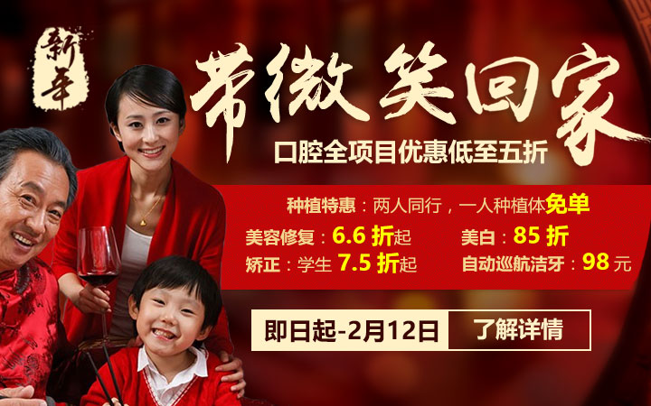 即日起——2017年2月12日,网络预约牙齿种植、牙齿美容等项目,即享康贝佳跨年美牙四重礼。